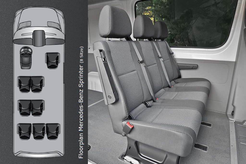 Nachfolgend finden Sie Fotos unserer Business Class – 8 Sitzer VIP-Vans.