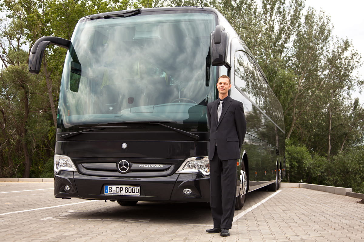 • Ortskundiger Busfahrer aus Berlin in Anzug und Krawatte